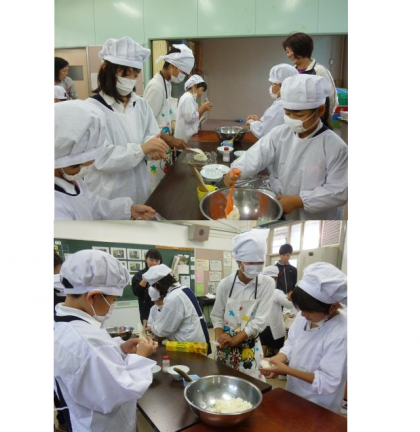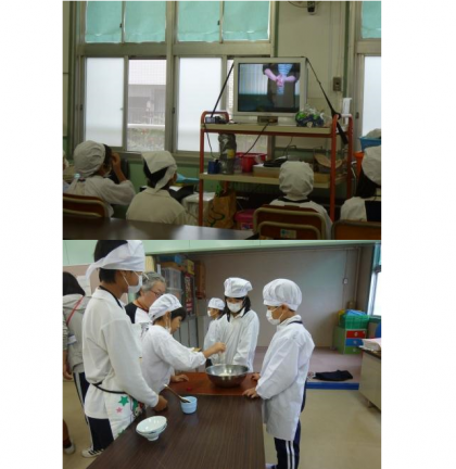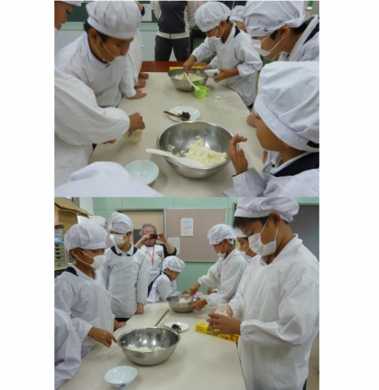 1時間目はあゆみの時間でした。12月にある親子交流会の練習でおにぎりを作りました。初めに、作り方をビデオで見ました。ごはんに塩を入れて、ラップに、お茶碗半分のご飯を置きます。それから、ラップごとにぎります。初めての人も上手にできていました。
