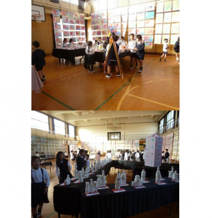 今日は、1,2,3年生が作品展の鑑賞をしました。力作ぞろいで、「すごいなあ」「じょうずやな」とお兄ちゃんやお姉ちゃんの作品に感心していました。明日は、4,5,6年生が鑑賞をします。