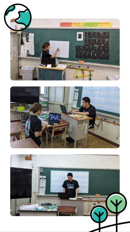 5年生は外国語のワークブックを使って学習しました。黒板の英語シートを見て、説明を聞きながらアルファベットの練習をしました。