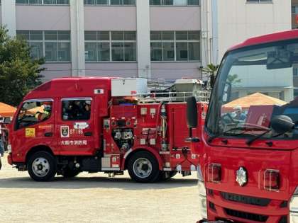 9月8日(日)巽東小学校にて「あそ防祭まな防祭」が開催されました。自衛隊や消防車、パトカーの展示や起震車の体験などもあり、多くの人でにぎわいました。