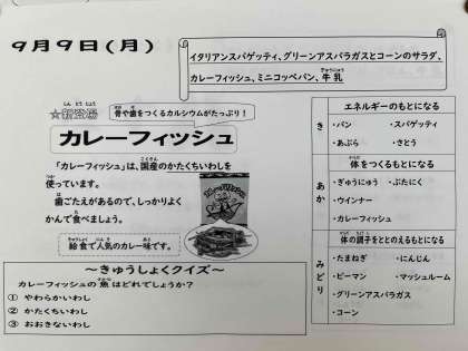 今日は、給食で初めてのカレーフィッシュが出ました。