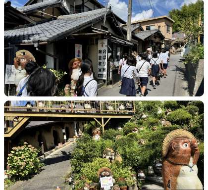 陶芸の歴史について学びました。信楽焼のたぬきが持っているもの、形などにはたくさんの意味があるようです。
