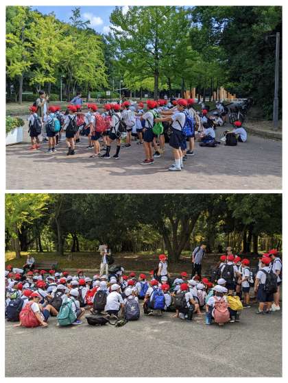 大泉緑地に着きました。広いです!今から班ごとにオリエンテーリングをします。