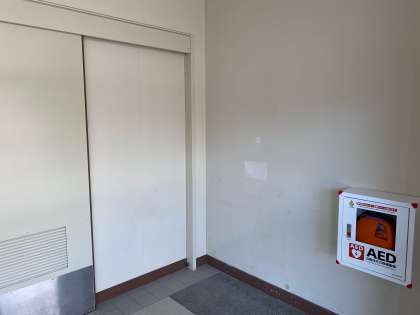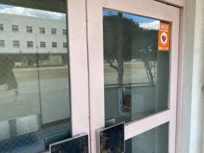 体育館中扉手前に、AEDを設置することができました。