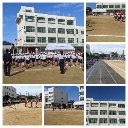 入場行進、開会式の練習をしました。先生の話を聞いて、しっかり行進したり、体操したりできました。