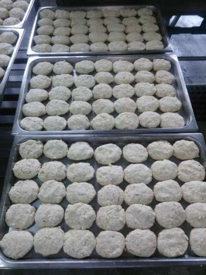2枚目の画像は、とうふハンバーグを焼く前です。お家で作るように1つ1つ手でまるめています。