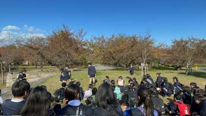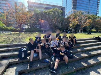 大阪城でお昼ご飯を食べました。その後に時間が余ったので、一発芸大会をしました。