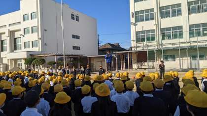 ひんやりと気持ちのいい11月最後の月曜です。校長先生のお話の後、冬の服装について、児童会より紹介がありました。きまりを守って、暖かく安全に冬を過ごすようにしましょう。