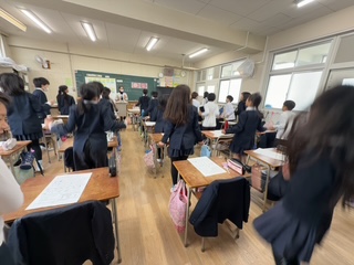 今回の栄養指導では普段食べているもののカロリーについて学習しました。普段何となく食べているお菓子のカロリーの高さにみんな驚いていました。まさかポテトチップス1枚で1分もランニングをしないと消費できないなんて…と言いながらも教室で体を動かし、カロリー消費の大変さも味わいました。