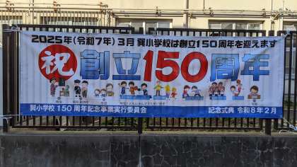 横断幕が出来上がりました。南門横に張られています。150周年に向けて気持ちが盛り上がります。