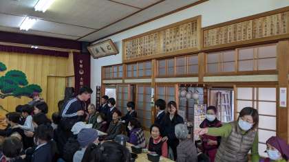 「老人憩いの家」の食事会サービスに参加し、歌とリコーダー演奏をしました。お食事会の方々に喜んでいただけたようで、たくさん拍手してもらいました。演奏の後は肩もみをし、これも喜んでいただけました。「ありがとうね」と声をかけていただき子どもたちも嬉しそうでした。このようなふれあいの機会をこれからも大切にしていきたいです。
