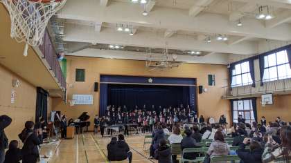 総合「12年間の歩みを胸に 未来へ羽ばたく」(6年間の歩み、合唱、合奏)