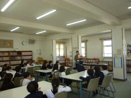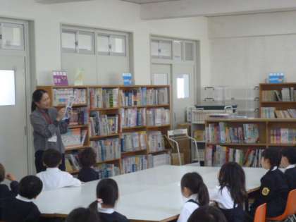 1年生は、学校図書館司書の先生に、図書室の使い方や、