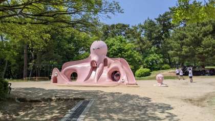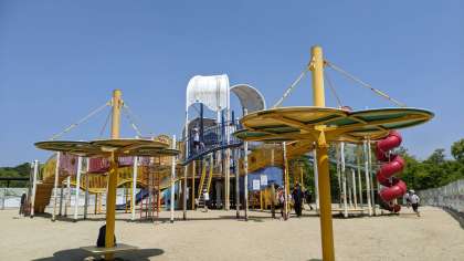 お昼ご飯の後、移動して別の遊具で遊びました。他に遊んでいる人は少なく、巽の子どもたちでたっぷり遊べました。