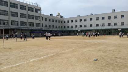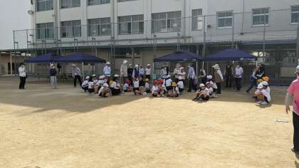 地域の方々は運動場に素早く8つのコースを作ってくださり、子ども達のチームにそれぞれ2人ずつついて、丁寧に教えながらコースを回ってくれました。1組でも2組でもホールインワンが出て、驚きと歓声に沸きました。
