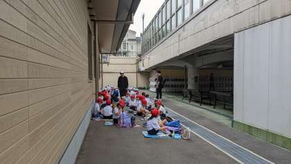 待ちに待ったお弁当の時間です。おいしそうに食べています。