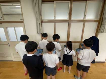 今週も環境事業局の方々に来ていただきました。今回は「生物多様性」をテーマに、タブレットを使って生きものの世界をのぞきながら、クイズ形式で楽しく学習しました。子どもたちは、身近な自然の中にも多くの生きものが関わり合って生きていることを知り、興味津々の様子でした。