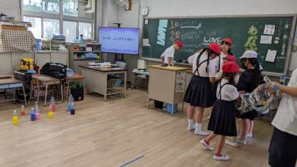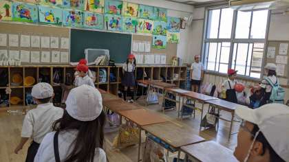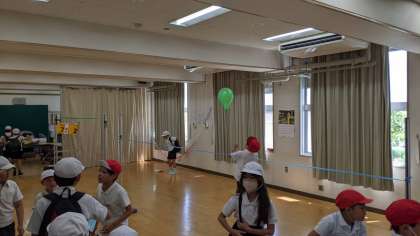 みんな楽しそうに回っています。上の学年の人が下の学年の人のめんどうをよく見てくれています。