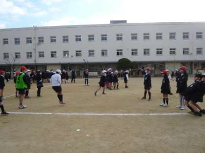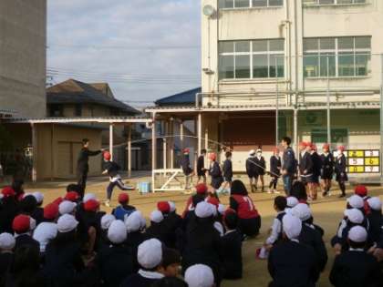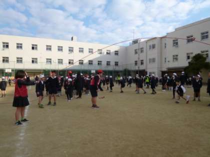 縦割り班で大なわをしました。高学年の人たちに教えてもらって、低学年の人たちも楽しく参加しました。