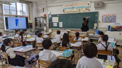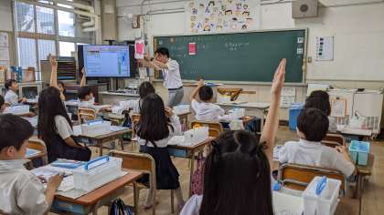 丁寧に一筆一筆描きました。2年生になって新しく用意してもらった絵の具セットを大事に使っています。
