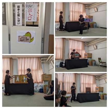 絵本の読み聞かせ、紙芝居もしていました。「恐竜まつり」にちなみ、恐竜の紙芝居でした。