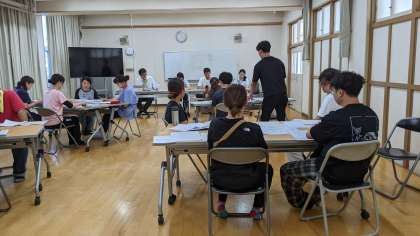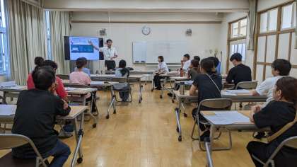 授業研究の後は、教職員で討議会を行いました。グルーブワークで、研究の視点に沿って、今日の授業について振り返りました。後半は去年から来てくださっている講師先生に、去年からの研究をさらに深めて今年の授業に生かす方法を具体的に教えていただきました。