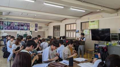 巽小学校の教職員と生野区内の小学校からも先生方が参加され、リコーダー研修会が行われました。講師は東京リコーダー協会の先生です。3年生から始まるリコーダーをいかに楽しく、大事なことは繰り返し押さえて学習するか、ポイントを絞って教えていただきました。「楽しかった」「難しかった」いろいろな声がありました。子どもたちが楽しく興味津々でリコーダーを練習するのと同じように、先生たちも楽しそうに研修をうけていました。