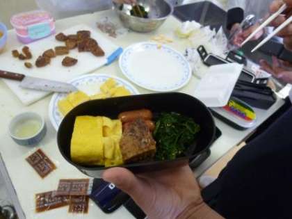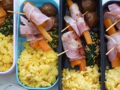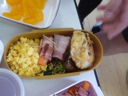 卵焼き、ウインナーなどみんなが好きなおかずが入っています。おいしそうにできました。