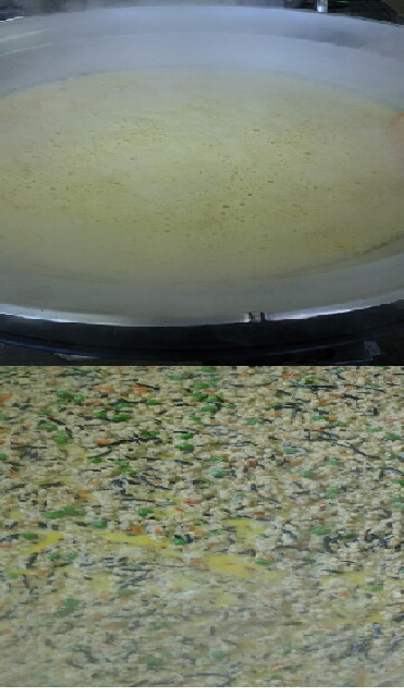 下の2枚目の画像は、煮たひじきの中に粉高野どうふをくわえると上の画像のようになります。その後グツグツと煮ていくと下の画像のように完成します。