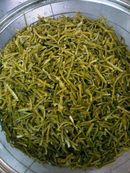 本日のメニューの茎わかめのつくだ煮の調理中です。
