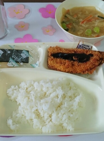 きょうのいわしのフライには、とんかつソースがつきました。
