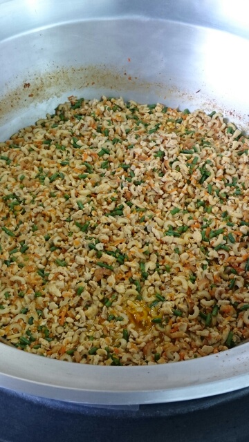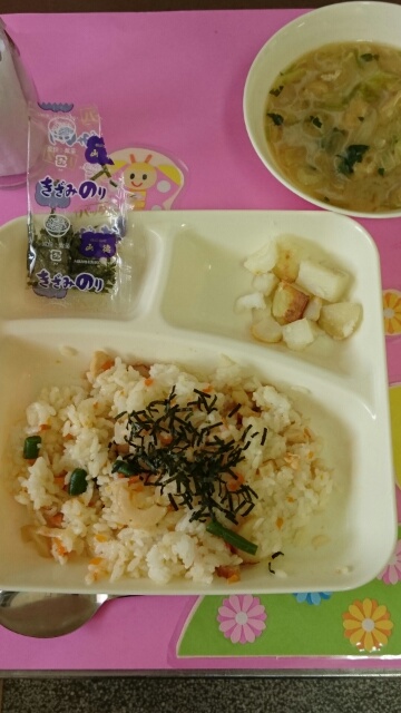 巽小学校ではご飯が委託の為児童が各自でお皿の上で具材と混ぜます。