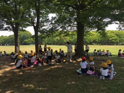 広い芝生広場でのびのびと遊んだ後は、木陰でお弁当タイム、、、