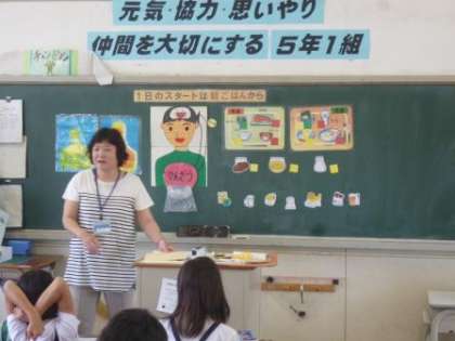 5年生が、教室で栄養について学習しました。朝ごはんの大切さについて学習しました。