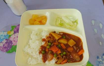 今日は人気のハヤシライスでした。ほとんどのクラスでごはんまで完食でした。