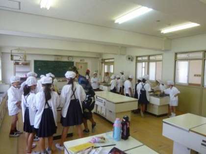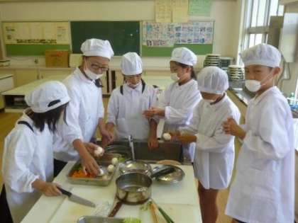 5年生が初めて、家庭科の学習で調理実習を行いました。