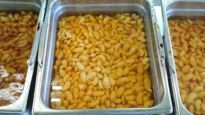 今日の大福豆の煮ものは焼き物機で調理しました。ふっくらと煮えていました。