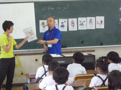 授業は、母国語が英語の先生に来ていただいて、担任も指導に参加します。