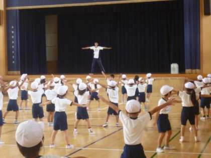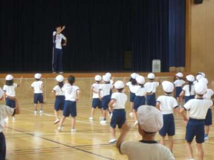 まず、1年生の練習の様子です。10月2日(日)の運動会にむけて、講堂でダンスの練習を楽しそうに行っていました。