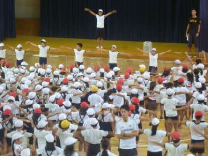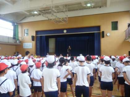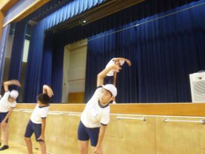 今日の児童集会は、運動会にむけてラジオ体操の練習を行いました。