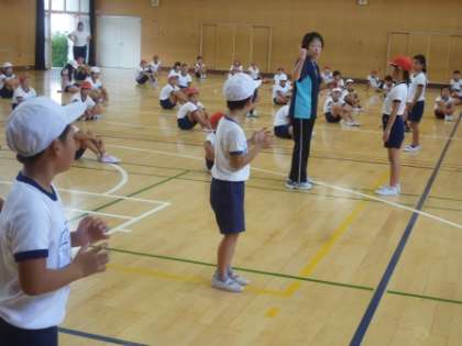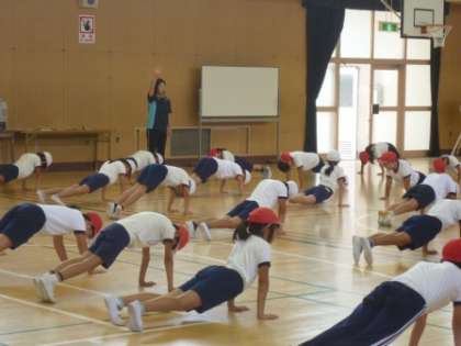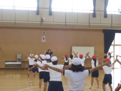 4年生は、基本の動きをひとつひとつていねいに確認した後、隊形を移動する練習も行いました。