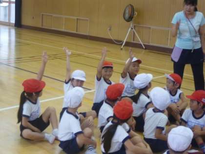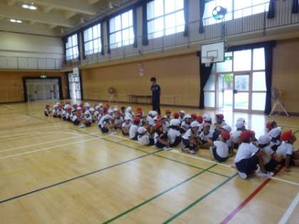 今日は、あいにくの雨ということで、全学年講堂での練習でした。