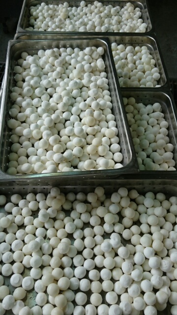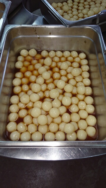 蒸す前の白玉だんごと出来上がったみたらしだんごです。