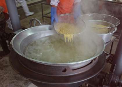 イアタリアンスパゲッティの調理中と今日ついたサラダのドレッシングです。アレルギーサポート月間(9月・10月)で使用する卵不使用のドレッシングです。