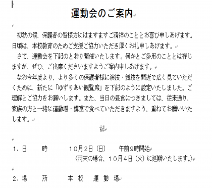 運動会に関するお知らせ
