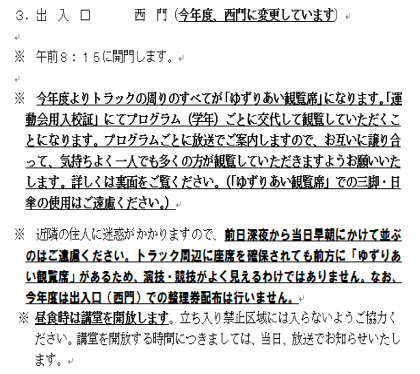 ・「運動会用入校証」で交代して観覧していただくこと