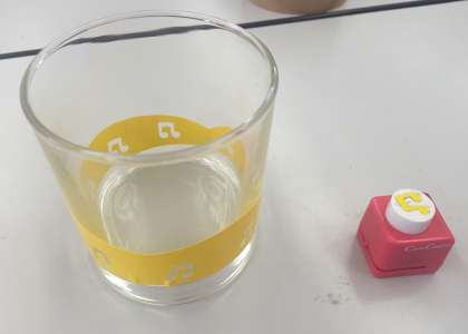 好みのデザインシールをグラスに貼り、サンド