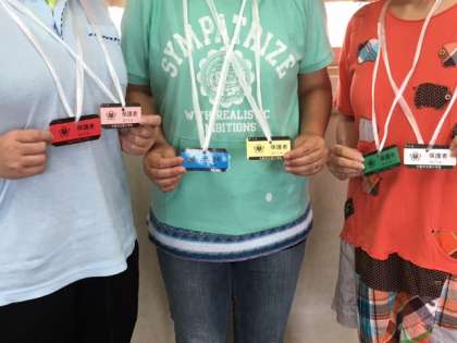 保護者様がボランティアとして、運動会用の入校証を作ってくださっています。ボランティアの皆様、本当にありがとうございます。