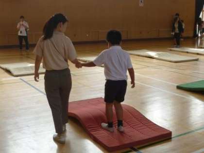 3年生は、講堂でアイマスク体験を行いました。