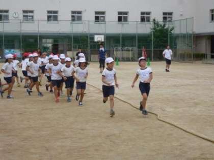 5年生は、運動場で団体競技「綱引き」の練習を行いました。